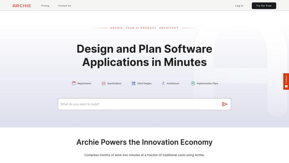 Archie is an AI-powered product architect that transforms ideas into detailed software specifications, designs, and architectural plans in minutes.